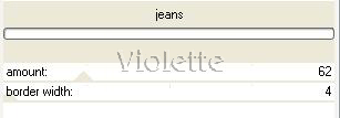 2 –Ouvrir une image de 650 x 450 pixels /Sélectionner tout 3 – Activer l’image imagen1/ Edition/Copier/Edition/coller dans la sélection Désélectionner Effets/pentacom/jeans :