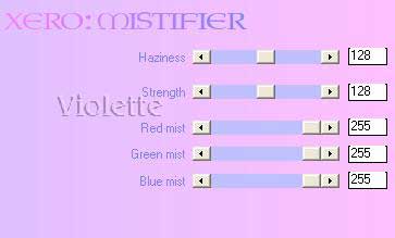 11 - Activer le tube SS_913/Image/Redimensionner à 75% Edition/Copier/Edition/coller comme nouveau calque Placer au centre Opacité à 35% 12 - Activer le tube du texte Edition/Copier/Edition/coller comme nouveau calque Placer sur le coin inférieur gauche Effets /Effets 3D/Ombre Portée : 1/1/100/10/noir 13 – Calques/Fusionner les calques visibles 14 – Effets/Xero/Mistifier :