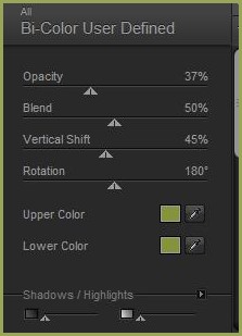 18 - Activer le calque supérieur **Ouvrir le tube Gerry bloemetje violet Edition/Copier/Édition/Coller comme nouveau calque couleur avant-plan #849438 **Effets/Nik Softener/Color Efex Pro 3/ Bi-Color User defined Placer la couleur dans les petits carrés de couleur