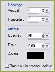**Calques /Convertir en calque raster **Déplacer le texte un peu vers haut **Effets/Effets 3D/Ombre Portée :