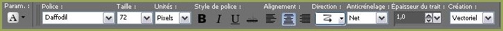 21 - Activer l'outil Texte/Police Daffodil/Taille : 72/vectoriel avant-plan fermé /couleur arrière-plan #849438
