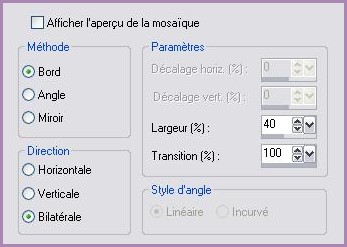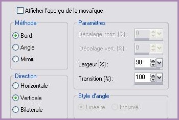 ** Effets/Effets d'image/Mosaïque sans jointure réglages ci-dessous :