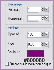 ** Effets/Effets 3D/Ombre Portée : 1/1/100/0/couleur #800080