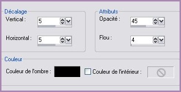 ** Image/Rotation libre de 90° à gauche** Effets/Effets 3D/Ombre Portée : 2/1/80/20/couleur #000000 Répéter avec ces valeurs négatives : -1/- 2/80/20/couleur #000000