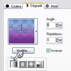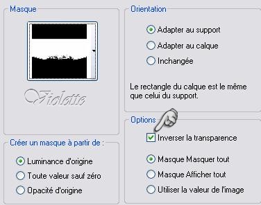 3 - Calques/Nouveau calque/Remplir de dégradé = inverser coché4 - Calques/Charger/Enregistrer un masque/Charger à partir du disque Choisir le masque "SN259_Verinhas.PspMask"