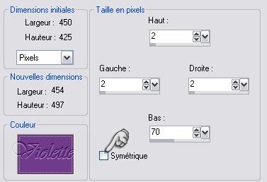 21 - Image/Ajouter des bordures : 2 pixels couleur #612b7e 22 - Image/Ajouter des bordures : 1 pixel couleur #ffffff 23 - Image/Ajouter des bordures : 3 pixels couleur #612b7e 24 - Placer votre signature 25 - Calques/Fusionner Tout 25 - Exporter en JPEG Optimisé