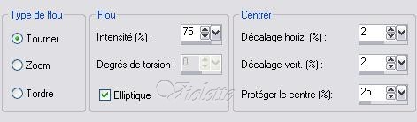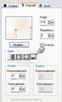 linéaire radial/angle : 174/ Répétitions: 2/Inverser coché