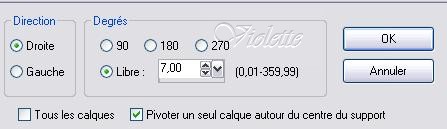 Se placer sur la copie:Image/Redimensionner à 90%/décocher " tous les calques" Calques/Fusionner le calque du dessous Image/Rotation libre de 7° à droite