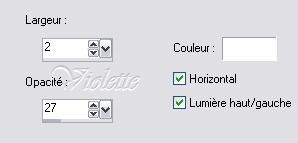 Opacité à 36% Désélectionner Effets/Effets 3D/Ombre Portée : 2/2/80/3/noir 10 - Dupliquer Effets/DSB Flux/Linear Transmission: