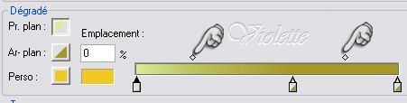 14 - Image/Ajouter des bordures : 1 pixel couleur #a59827 15 - Image/Ajouter des bordures : 30 pixels couleur #d9ec9b Sélectionner avec la baguette magique Remplir de dégradé :