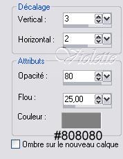 18 - Activer le tube "CJ_Gold_Corner2 .pspimage" Image/Redimensionner à 80%/décocher " tous les calques" Répéter une seconde fois Placer sur le coin gauche Effets/Effets 3D/Ombre Portée :