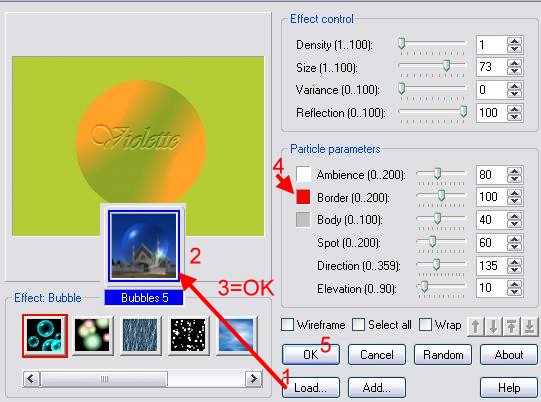 5 - Activer le calque du fond : Effets/Ulead Particle: clic sur "Load" et rechercher "Bubbles 5" puis OK