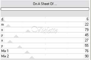 7 - Calques/Nouveau calque Sélection/Charger/Enregistrer une sélection/Charger à partir du disque : "randbloemengerry.Pspselection" remplir de couleur claire n°1 Effets/Andrew's Fikter 49/On A Sheet Of...
