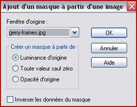 3 - Activer le masque "gerryframe.jpg" Calques/Nouveau calque de masque/à partir d'une image/Ajout d'un masque à partir d'une image sélectionner le masque "gerryframe.jpg"