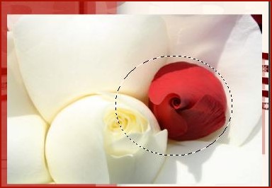 7 - Sélection/Charger/Enregistrer une sélection/Charger à partir du canal alpha gerry-love 2 Activer l'image des roses Edition/Copier/Édition/Coller comme nouveau calque déplacer l'image de façon à ce que la rose rouge soit placée comme ci-dessous :