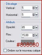 11 - Activer le tube text Edition/Copier/Édition/Coller comme nouveau calque Effets/Effets 3D/Ombre Portée :