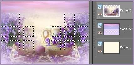 2 - Activer le tube "gerry misted flower 10.pspimage"ou un tube avec beaucoup de fleurs Edition/Copier/Édition/Coller comme nouveau calque Image/Redimensionner à 80%/décocher " tous les calques" faire encore 3 fois Placer le tube au centre