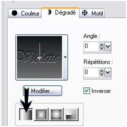 *** 1 - Ouvrir les tubes , les dupliquer et fermer les originaux 2 - Placer en avant-plan la couleur #12451a et en arrière-plan la couleur #717171 Configurer un dégradé linéaire angle: 0°/Répétition: 0/Inverser coché