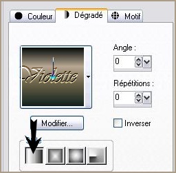 3 - Rechercher votre dégradé et configuré ainsi: linéaire angle: 0°/Répétition: 0/Inverser non coché
