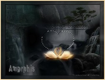 22 - Activer le calque inférieur Sélection/Charger/Enregistrer une sélection/charger à partir du disque Charger la sélection amorph1******* Deux façons de déplacer la sélection ** soit faire un clic droit de la souris sur le bord de la sélection avec l'outil déplacer et emmener la sélection au centre des deux cygnes ******* ** soit Sélection/Modifier la sélection elle se transforme en couleur rouge la mettre en place Sélection/Modifier la sélection