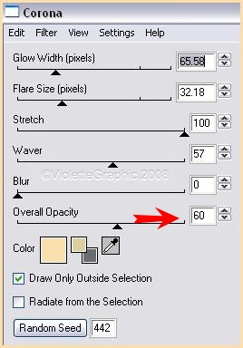 Effets/Eye Candy 4000/Corona même réglages avec Overall Opacité sur 60 :