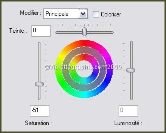 Réglages/Teinte et Saturation/Teinte/Saturation/Luminosité: