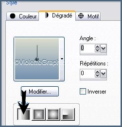 *** 1 - Ouvrir les tubes , les dupliquer et fermer les originaux 2 - Placer en avant-plan la couleur #729020 et en arrière-plan la couleur #dadcce Configurer un dégradé linéaire /angle : 0/Répétition: 0/Inverser non coché