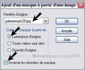 6 - Activer le masque "gabeemask28.jpg" Calques/Nouveau calque de masque/à partir d'une image/Ajout d'un masque à partir d'une image sélectionner le masque "gabeemask28.jpg"