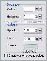 7 - Effets/Effets 3D/Ombre Portée : 1/1/100/1/couleur #cbd7d5