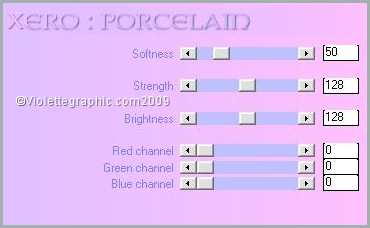 Réglages/Netteté/Netteté 8 - Calques/Fusionner les calques visibles 9 - Effets Xero/Porcelain avec ces réglages :