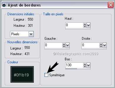 11 - Image/Ajouter des bordures : symétrique décoché 130 pixels couleur foncée