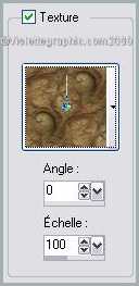 12 - Avec la baguette magique ( Tolérance et Progressivité à 0 ) sélectionner la couleur foncée 13 - Calques/Nouveau calque Dans la Palette de style, clic dans la couleur claire de l'arrière-plan rechercher votre texture 21_01_2007_bg_31_git.bmp configurée ainsi: