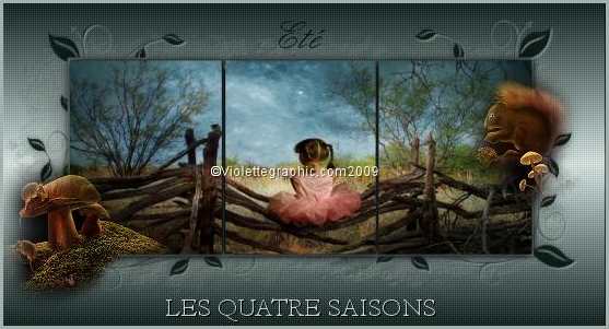 20 - Activer l'outil Texte/Police au choix avant-plan fermé/couleur arrière-plan #cbd7d5 ( penser à décocher la texture ) Entrer le texte : Les Quatre Saisons Calques /Convertir en calque raster 21 - Répéter l'ombre portée précédente