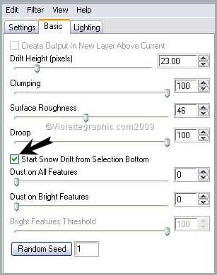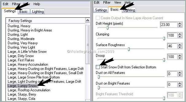 Garder sélectionné répéter mais avec ces réglages 33 - Effets/Alien Skin Eye Candy 5 /Nature/ Snow dériver