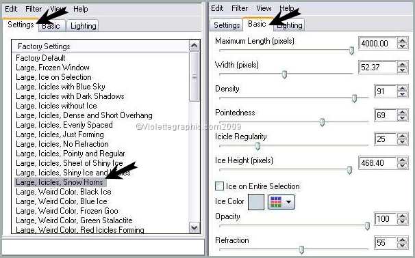 36 - Effets/Alien Skin Eye Candy 5 /Nature/ Iciles avec ces réglages :