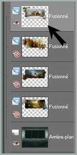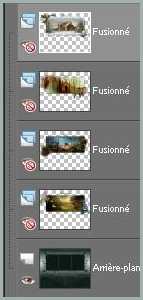27 - Fermer le calque fusionné 3 28 - Ouvrir le calque du fond