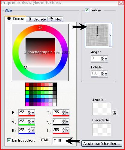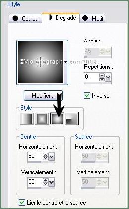 2 - Placer en avant-plan la couleur #000000 et en arrière-plan la couleur #ffffff Configurer un dégradé halo/angle : 0/Répétition: 0/Inverser non coché