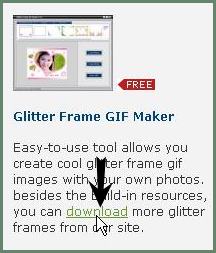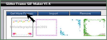Nous nous occupons de l'animation ***** 9 - Ouvrir votre programme Glitter à Frame Gif Maker Il contient quelques cadres mais nous avons besoin d'aller chercher notre cadre clic sur Get More Frame: