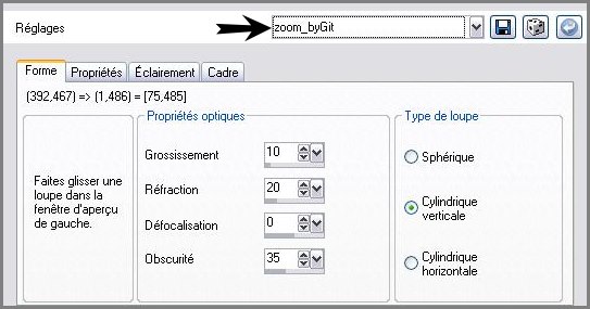 34 - Effets/Effets artistiques/Loupe: rechercher le preset zoom_bygit modifié ainsi: