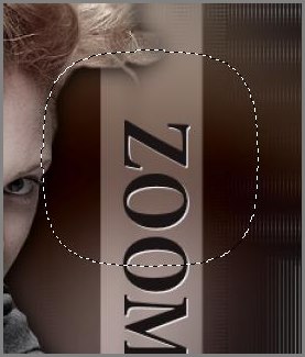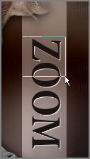 29 - Activer le calque supérieur 30 - Activer l'outil Texte/Police de votre choix avant-plan fermé /couleur arrière-plan #1B1515 Entrer le texte : "Zoom" Clic droit /Convertir en calque raster Image/Rotation libre de 90° à droite Placer comme sur le modèle