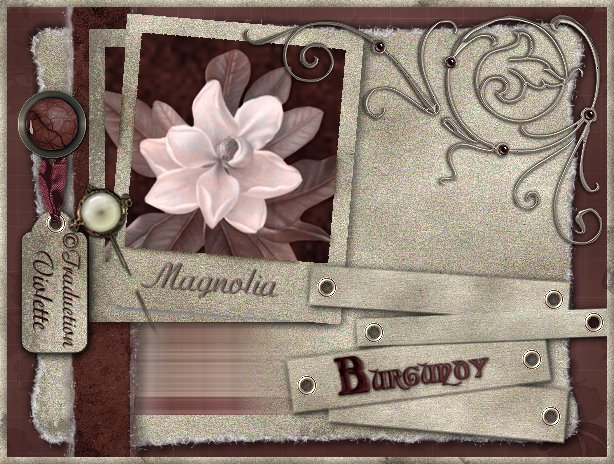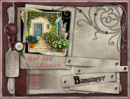 14 - Placer un texte de votre choix ou Activer le texte "Burgundy" Image/Redimensionner à 75%/décocher " tous les calques" et placer sur l'élément 3
