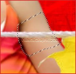 14 - Dupliquer le tube "jet-leaves-1.pspimage"Calques/Agencer/Déplacer vers le hautA l'aide de l'outil lasso entourer la partie de la corde qui est sur le bras