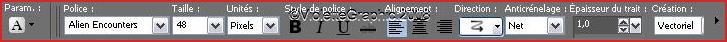 16 - Activer l'outil Texte/Police Alien Encounters/taille : 150 couleur avant-plan #cc0829 /couleur arrière-plan #f08129 Placer en arrière-plan le dégradé linéaire angle: 90°/Répétition: 1/Inverser coché Entrer la première lettre de votre nom : ici Bpuis taille : 55 , les lettres eautypuis taille: 48