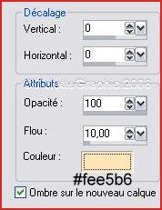 17 - Effets/Effets 3D/Ombre Portée : 0/0/100/10/couleur #fee5b6/ombre cochée