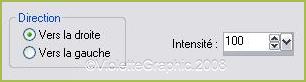 6 - Calques/Dupliquer Activer l'image inférieure Effets/Effets de Distorsion/Vent :