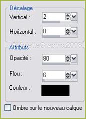 12 - Calques/Nouveau calque Sélection/Charger/Enregistrer une sélection/charger à partir du disque Localiser la sélection" Lelanie_SN_007.PspSelection"/Charger remplir de couleur claire Sélection/modifier/Contracter de 1 pixel Appuyer sur la touche "Suppr" Sélection/Désélectionner Effets/Effets de bords/Accentuer 2 fois Effets/Effets 3D/Ombre Portée :