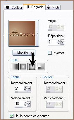 *** 1 - Ouvrir les tubes , les dupliquer et fermer les originaux Placer en avant-plan la couleur #c9ae8c et en arrière-plan la couleur #763c24 Configurer un dégradé halo angle: 0°/Répétition: 0/Inverser coché