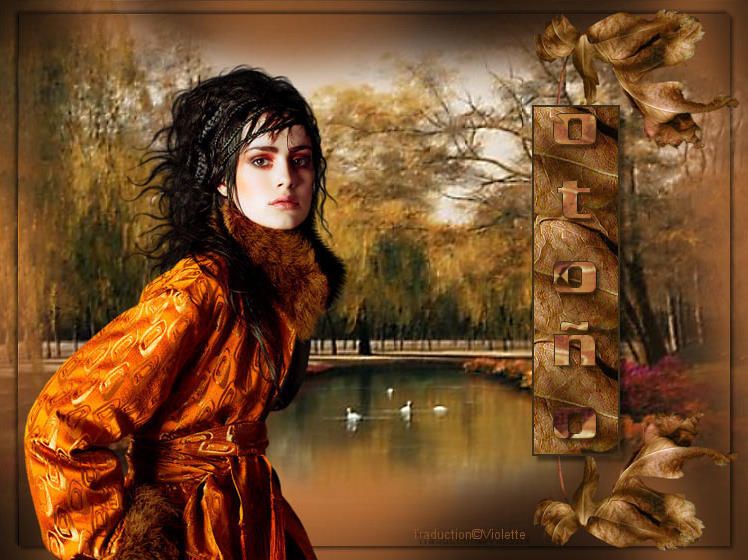 *** 1 - Ouvrir vos tubes , les dupliquer et fermer les originaux 2 - Installer en premier plan la couleur #864f27 et en arrière-plan la couleur #3d3119 3 – Ouvrir une nouvelle image de 750 x 560 pixels transparente/Remplir couleur d'avant-plan 4 - Effet / Graphics Plus / Cross Shadow / 50-50-50-50-50-50-128-128 5 - calques / Nouveau calque 6 - Sélection/Sélectionner Tout 7 - Activer le tube"Otoño-Autumn" / Edition/Copier/Edition/Coller dans la sélectionDésélectionner Employer l'outil déformer pour l'étirer de manière à occuper toute la surface8 - calque / Dupliquer 9 - Calques / Fusionner tout 10 - Réglages/Netteté/Masque flou : radius: 5 / Intensité:100/ écrêtage: 5 11 - Effet / FM Tile Tools / Blend Emboss 12 - calque / DupliquerImage / Redimensionner à 95% 13 - Sélection/sélectionner tout Sélection/Flottante 14 - Effets /Effets 3D/ Ombre Portée : 3/3/50/5/noir Répéter avec des valeurs négatives : -3 en décalage vertical et horizontal 15 - Activer le tube "jet-woman9-september-2007"/ Image / Redimensionner à 80% Edition/Copier/Edition/Coller comme nouveau calque Placer sur la gauche16 - Activer le tube "LEAF-CARLOW"/ Image / Redimensionner à 40% Edition/Copier/Edition/Coller comme nouveau calque Placer dans le coin inférieur droit calque / Dupliquer Image / Renverser 17 - Activer le tube "Text tube otoño-autumn"/ Copier / coller comme nouveau calque Placer entre les deux feuilles 18 - calques / Nouveau calqueAvec l'outil sélection tracer un rectangle autour du texte choisi remplir de couleur foncée 23. Sélection/Modifier/Contracter 2 Pixels clic sur à la touche "Suppr"Désélectionner 17 - Activer le tube "Text tube otoño-autumn"/ Copier / coller comme nouveau calque 18 - Ouvrir de nouveau le tube des feuilles Copier / coller comme nouveau calque de façon à remplir le rectangle sous les lettresUtiliser la gomme d'effacer pour enlever tout de surplus hors du rectangle 19 - Effets /Effets 3D/ Ombre Portée : 3/3/50/5/noir 20 - Signer/Fusionner Tout 21 - Exporter en JPEG Optimisé