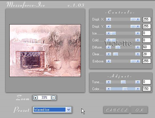 7 - Calques/Fusionner tout 8 –Effets/ Plugins / Mezzoforce-ice