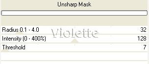 9 – Activer le tube « Marif_2006_octobre_face0167 »Edition/Copier/Edition/coller comme nouveau calque Placer sur la droite Calques/Fusionner tout 10- Effets/Filter Unlimited / Image Enhancement / Unsharp Mask :